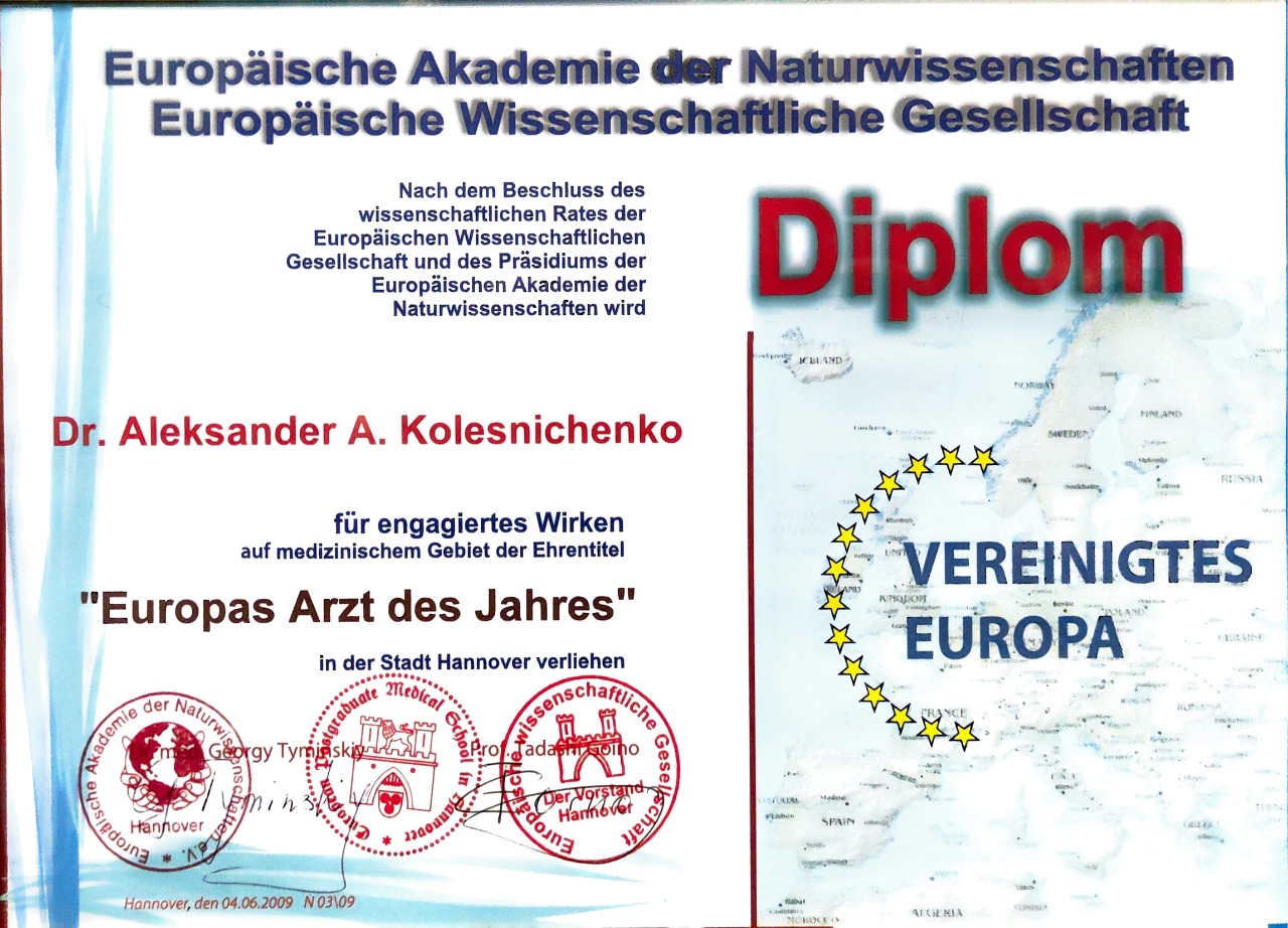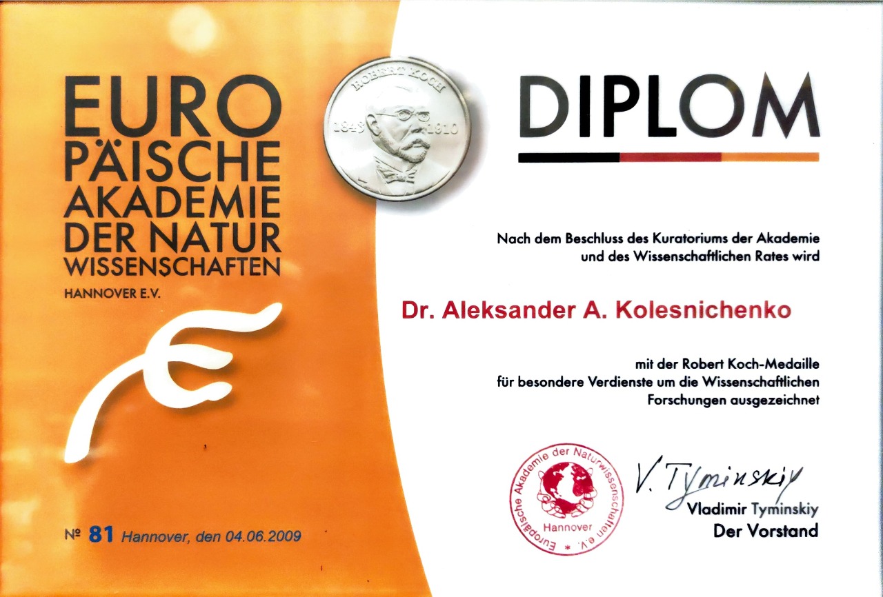 - премией Европейской академии естественных наук имени Paul Ehrlich и др.